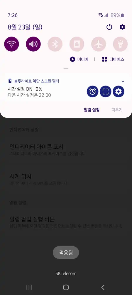 알림 팝업 설정도 할 수 있다. 알림 메뉴의 알림을 우측으로 밀고 메뉴 버튼을 클릭하면 알림이 팝업 형태로 뜬다. 카톡 같은걸 할 때 편리할 수도 있을 것 같다.