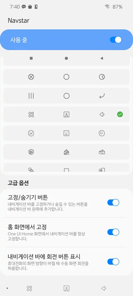 Navstar은 네비게이션 바 관련을, NotiStar은 알림 관련 설정을 할 수 있다. 네비게이션 바를 고정하거나 네비게이션 바의 아이콘들을 바꿀 수도 있다. NotiStar엔 스마트폰의 모든 알림이 기록된다. 잠금화면에서도 NotiStar을 사용할 수 있다.