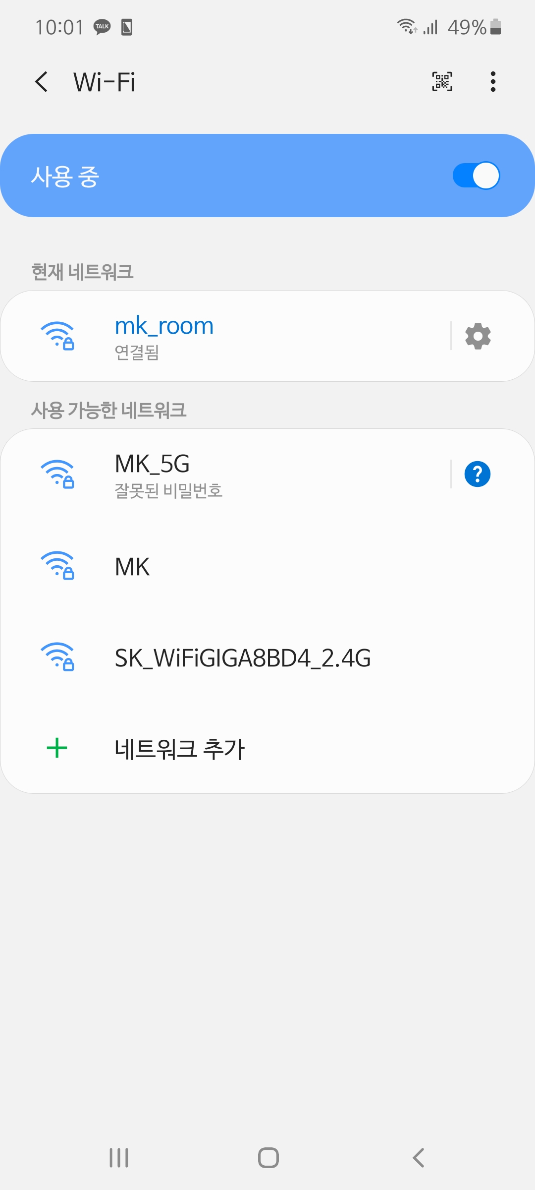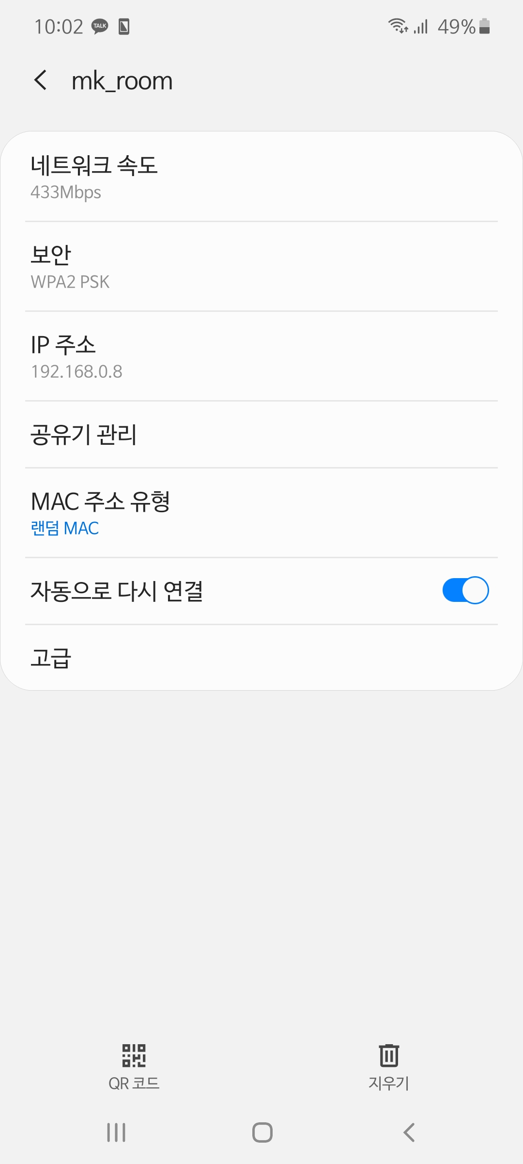 이제 에뮬레이터의 IP 주소로 연결을 해야 한다. 그러기 위해서 WIFI 설정으로 가자. 그 후 자신이 연결한 WIFI의 설정을 눌러서 IP 주소를 확인하면 된다.
