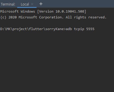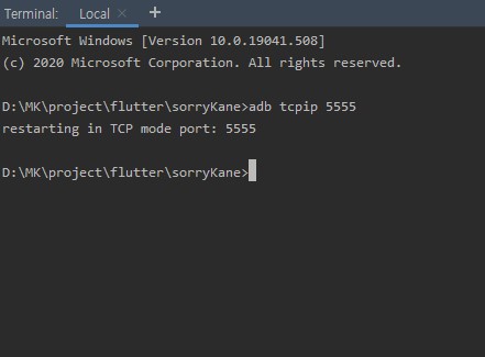 우선 USB로 에뮬레이터와 연결하고 안드로이드 스튜디오를 실행하자. 안드로이드 스튜디오를 실행했으면 하단의 Terminal을 클릭해라. 그 후 adb tcpip 5555를 입력해라. restarting in TCP mode port: 5555라고 뜨면 잘된 거다.