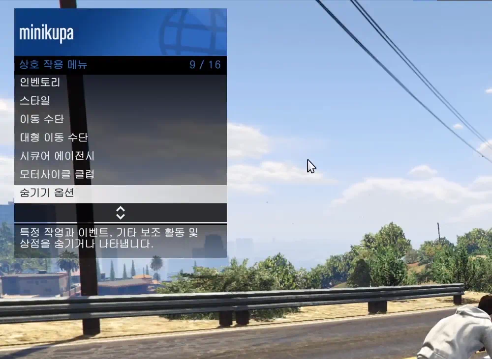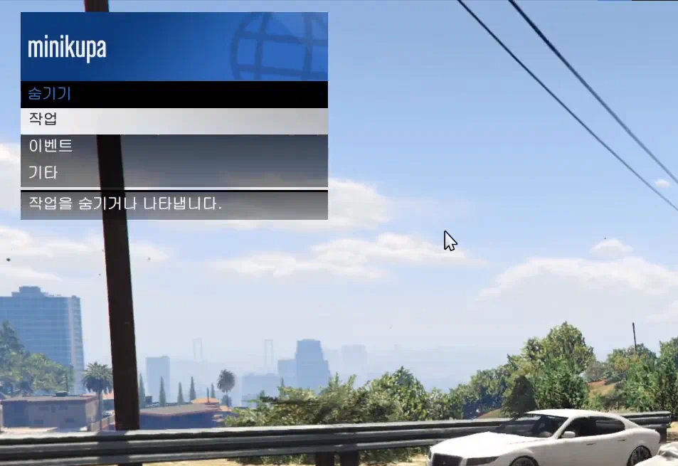 GTA 온라인에 접속하고 M키를 눌러 상호작용 메뉴를 열자. 그다음 아래로 내려서 숨기기 옵션을 열자. 그러면 작업, 이벤트, 기타 3개가 나오는데 작업에 들어가면 된다.