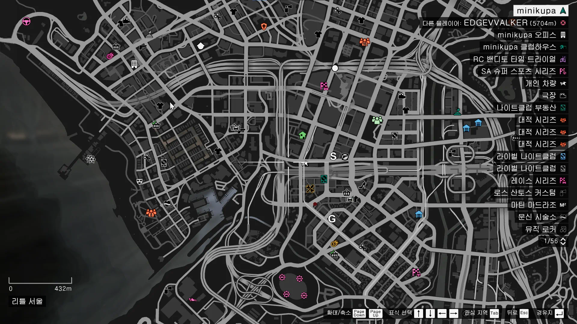 위처럼 모든 작업을 커스텀으로 설정했다면, 맵에 레이싱, 작업, 임무 등 다양한 표시가 나타난다. 여기서 내가 순간이동 하고 싶은 위치 근처에 있는 표시를 선택하자. 다른 글들을 보면 레이싱에 들어가라고 하는데, 내가 여러번 해봤을 땐 종류는 상관없었다.